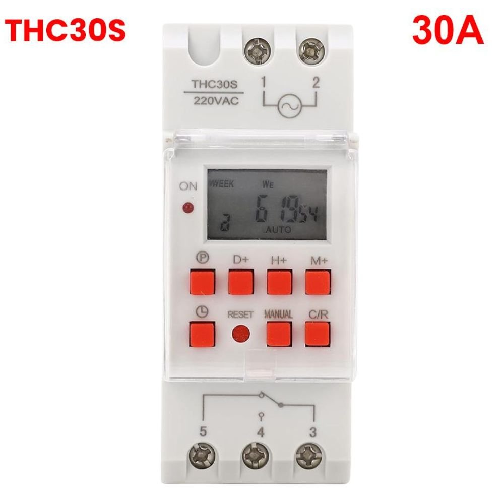 Product Description:The KG316T Weekly Timer Switch 220V is a smart digital programmable relay designed for automatic scheduling of electrical appliances. With its LCD display, user-friendly button interface, and flexible 30-group ON/OFF settings, this timer switch provides precise control over lighting, motors, pumps, and home automation systems.It supports daily and weekly programming, allowing users to set specific ON/OFF cycles for different days of the week. The auto/manual modes provide easy customization, while the minimum setting time of 1 minute ensures efficient energy use.This timer switch is widely used for home automation, agricultural irrigation, industrial automation, security lighting, and other applications where precise timing control is required.📢 Ideal for homes, farms, factories, offices, and commercial settings! Specifications:🔹 Model: KG316T Weekly Timer Switch 🔹 Voltage: AC 220V 🔹 Load Capacity: 25A / 220V 🔹 Programming Groups: 30 ON/OFF groups per day 🔹 Minimum Timing Interval: 1 minute 🔹 Modes: Auto / Manual / ON / OFF 🔹 Display: LCD screen for easy programming 🔹 Material: High-Quality ABS Plastic 🔹 Installation: DIN Rail / Panel Mount 🔹 Operating Temperature: -10°C to 50°C 🔹 Usage: Lighting, irrigation systems, motors, heating control, security lighting, industrial automation